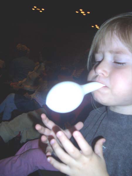 | SO, 12.11.2006: von Omi Silvana Nachdem wir wieder Opi besucht und mit Papa telefoniert hatten, sind wir um 15.00 Uhr ins Bürgerhaus gefahren, wo heute "Der Kleine Eisbär" aufgeführt wurde. Um die Wartezeit bis zum Beginn zu verkürzen, lag auf jedem Stuhl ein Päckchen Traubenzucker und ein kleines Päckchen Gummibärchen und ...