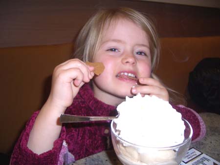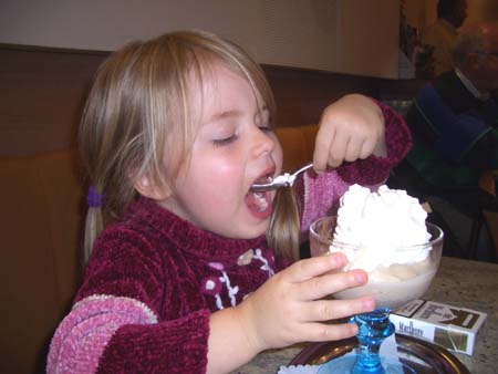 Zum Abendessen gab es heute Apfelpfannkuchen, die Dir sehr gut geschmeckt haben. Überhaupt ißt Du jetzt auch viel besser als früher. Danach hat Dir Opi noch eine Bananenmilch gemacht..