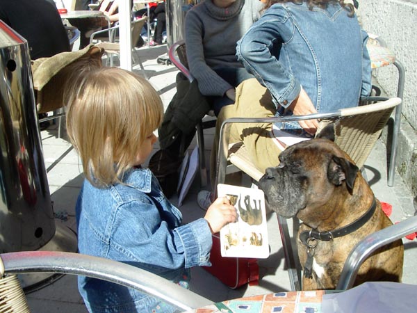 Heute waren wir beide in der City. Du hast bei Dr. Schatz eine Röteln-Masern-Mumps-Auffrisch-Impfung bekommen und im Cadu mit einem Hund gespielt. Mama ist später nachgekommen.