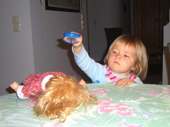 und dann geheult, weil sích die Haare in der Bürste verfangen hatten.
