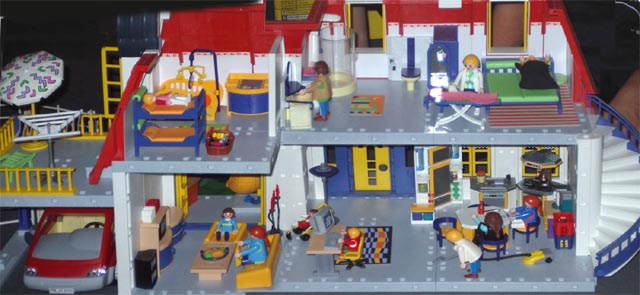 Achso. Neben dieser schönen Villa gehört noch viel mehr zur Playmo-World. Ein komplettes Ferienhaus, ein Reiterhof, eine Tankstelle, eine Zahnarztpraxis. Und noch ein paar schicke Autos, sowie ein Krankenwagen, Fahrräder, ein Motorrad, ein Vespa-Roller, ein Kaninchen-Stall... - ich habe bestimmt noch einiges vergessen, oder Lisa?