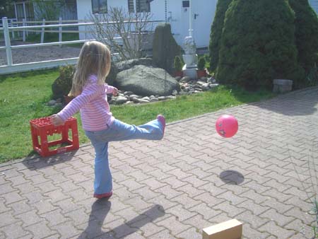 Nachdem die anderen mit dem Turnen fertig waren, gab es Essen: Spinat, Bratkartoffel und Eier. Auf die Eier hast Du verzichtet, aber den Teller mit Spinat und Kartoffel hast Du ratzfatz leergegessen. Überhaupt können wir uns nicht beklagen, du ißt wesentlich besser als bei Deinem letzten Besuch! |