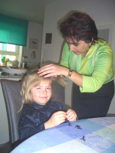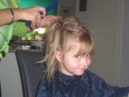 | FR, 17.11.2006: von Omi Silvana Um 8.30 Uhr heute morgen kam schon Rosa. Zunächst hat sie mir die Haare gefönt, dann hat sie Dir eine süße Frisur gemacht.