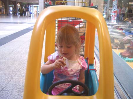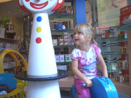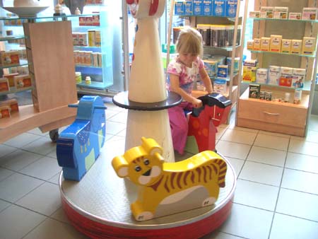 ... und wir haben wieder das ganze Programm durchgemacht. Zunächst sind wir in die Apotheke und du hast gleich entdeckt, dass es hier auch ein kleines Karussel gibt. Und im Gegensatz zu anderen kostet dies auch nichts :-)