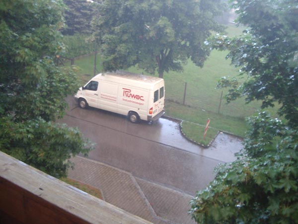 SO, 04.07.2004: Von Papa![]() ![]() ![]() So gut sieht man´s nicht, aber es hat kurzzeitig echt fett runtergeschüttet. Das da unten ist Hagel auf unserem Balkonboden. ![]() |