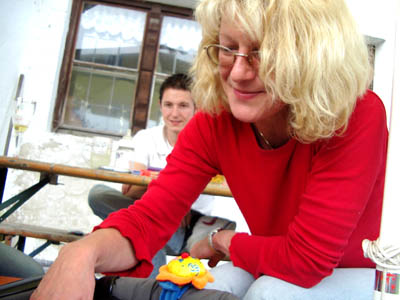 So. Kleiner Zeitsprung. Nachmittags sind wir zu Opa Alfred gefahren. Hier siehst Du Mary (Alfred´s Exfreundin), die wirklich ganz entzückt von Dir ist! ![]()