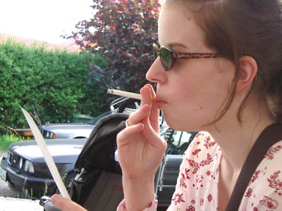 Und so war der Tisch gedeckt: Kaffee und frische Brötchen, Eier, Wurst, Käse und O-Saft bei Kerzenschein. Tolle Erfindung, so `n Vatertag! :-) ![]() Auf den unteren drei Bildern siehst Du, wie Du wie nix auf unser Bett klettern kannst. Das Ganze dauert kaum 5 Sekunden. ![]()