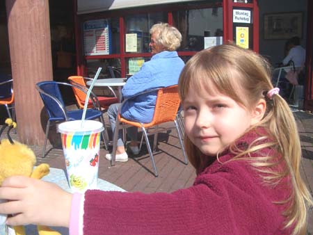 Heute morgen bist Du zunächst mit Opi ins Eiscafe. Und da es schon warm genug ist, konntet Ihr draußen sitzen.