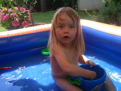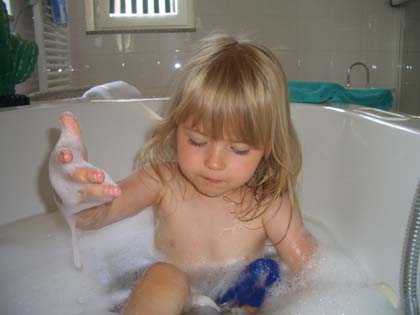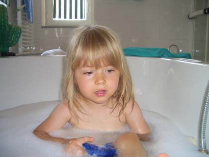 | MO, 16.10.2006: von Omi Silvana Heute wird es noch heißer als gestern, nämlich 32°C! Nach dem Frühstück sind wir beide in die Badewanne. Dieses Mal hast du dich sogar richtig darauf gefreut und auch das Haarewaschen war wieder ohne Probleme.