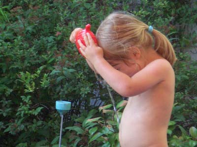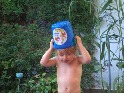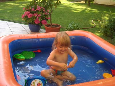 Nach einer kurzen Rast im Eiscafe sind wir wieder nach Hause und du durftest wieder in deinem kleinen Pool planschen.