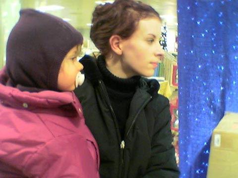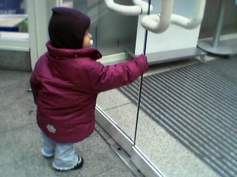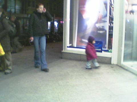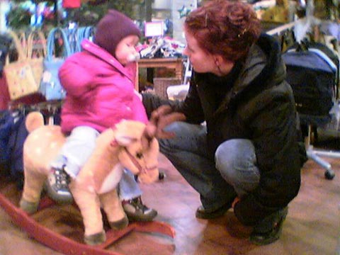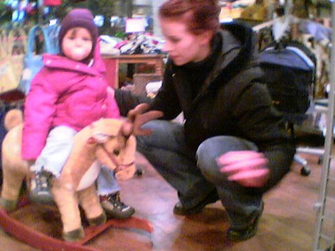 | SO, 21.12.2003: von Papa Heute Abend im Karstadt, Abteilung Weihnachtssachen. ![]() "Oh, was ist denn das für eine Spaßtruppe hier? - Mal drücken." ![]() Der erste ganz links fängt an mit "Jingle Bells". Nach der ersten Zeile setzen alle anderen synchron ein und tanzen dazu. Ein echtes Ständchen. ![]() Kurz vor acht vorm Karstadt. ![]() Alina macht sich davon. ![]() Sie ist ja schließlich schon groß und kann alleine einkaufen gehen. ![]() Wenn nur diese Tür nicht so schwer aufginge... ![]() ![]() Eine Kundin ist so nett, und läßt Dich rein. Sie weiß nicht, dass Du zu uns gehörst. ![]() Tja, nur DA kommst Du jetzt auch nicht weiter... ![]() Deswegen holen wir Dich wieder raus. ![]() Jetzt gehen wir noch zu "This And That". Da gibt´s allerlei Krimskrams. Zum Beispiel auch Schaukelpferde. ![]() ![]() Doch begeistern wolltest Du Dich dafür nicht. Schon nach 10 Sekunden hattest Du genug. |