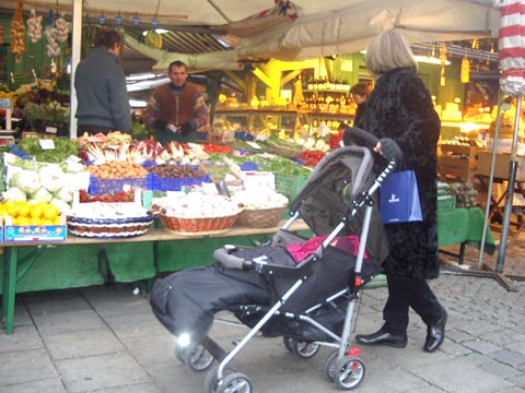 Und auf den Viktualienmarkt, wo wir für unser Abendessen einkaufen.